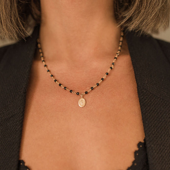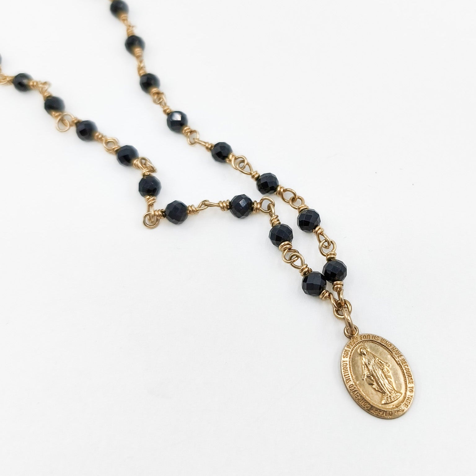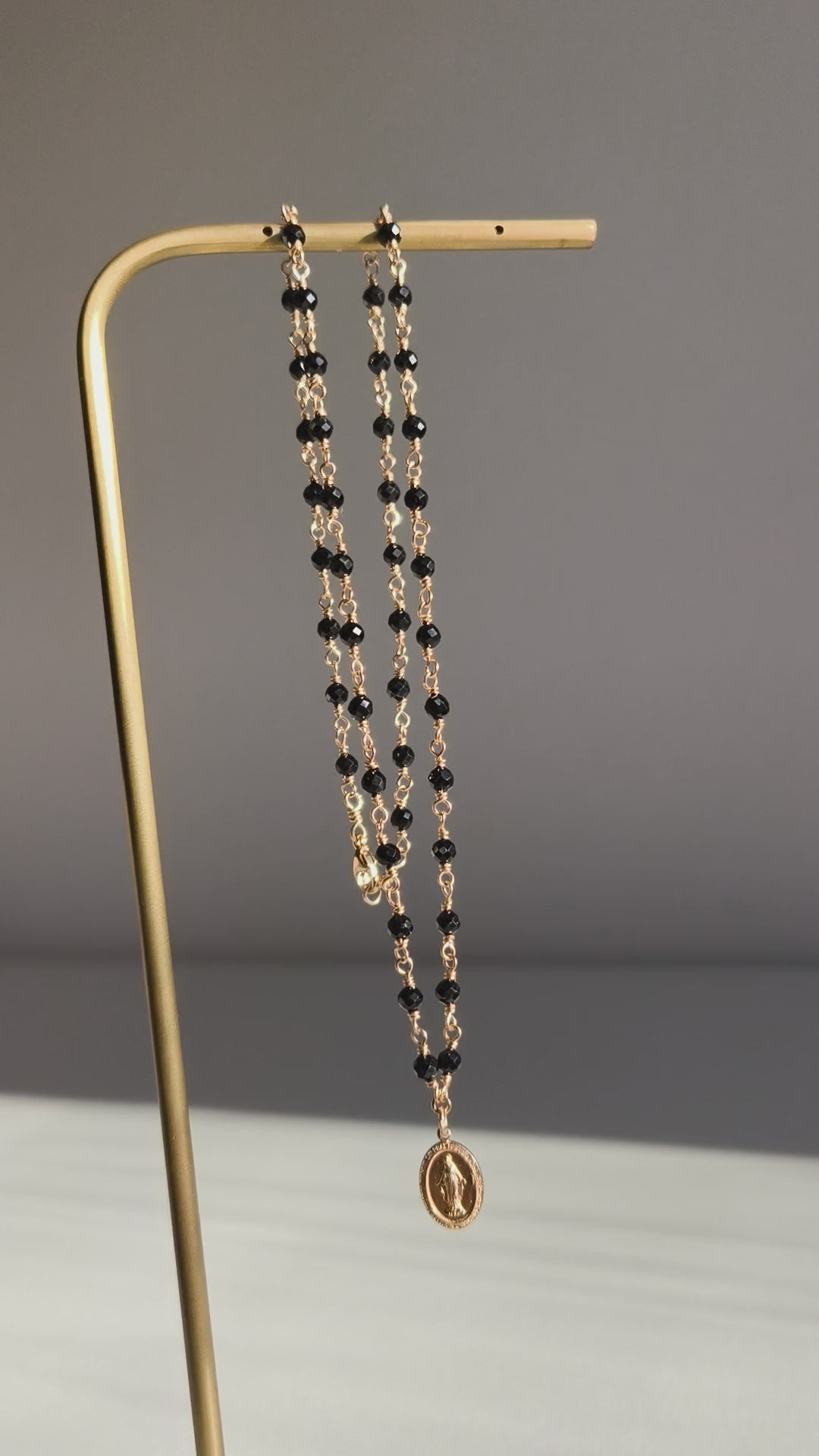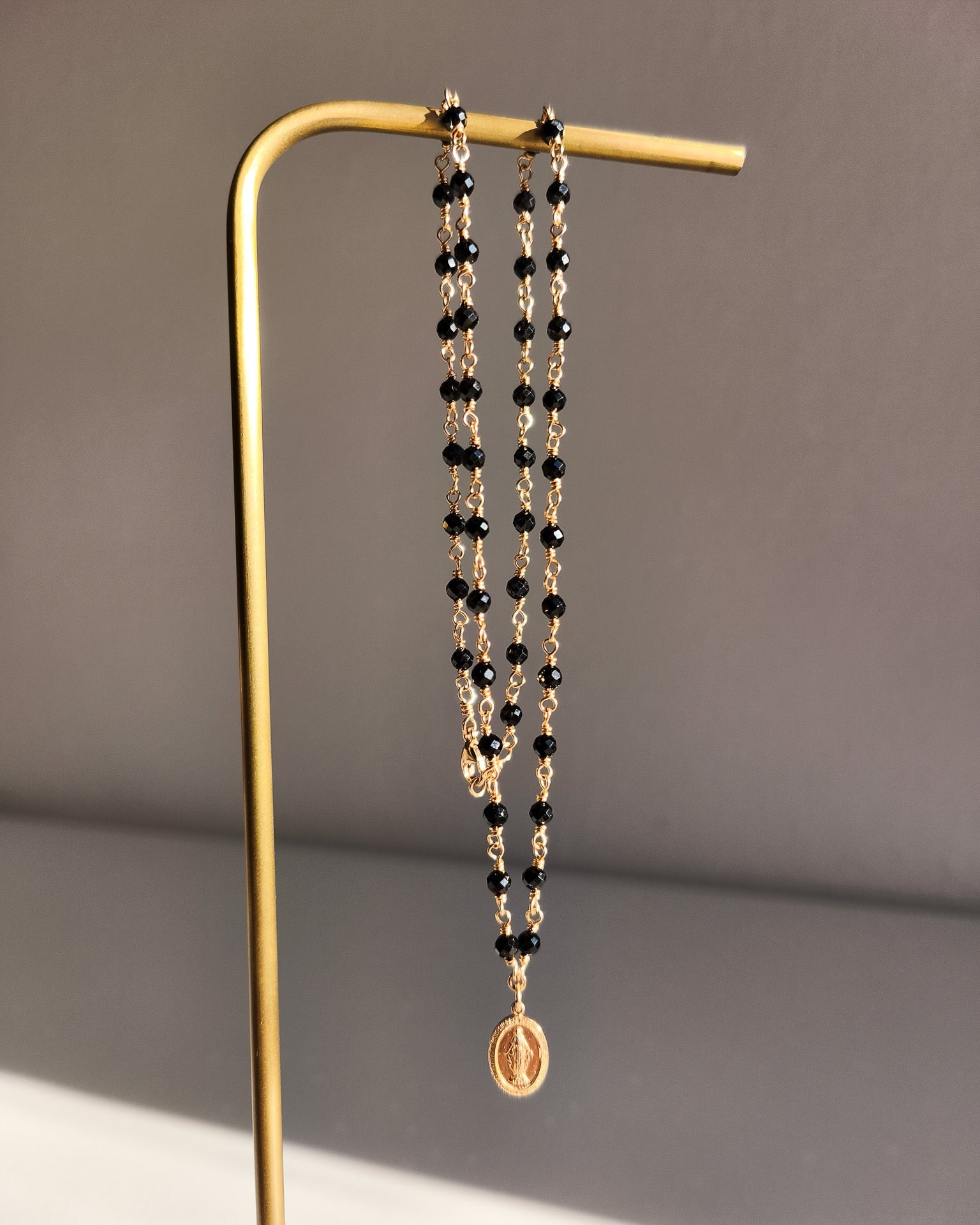 Fazetovaný třpytivý spinel a přívěsek s madonkou