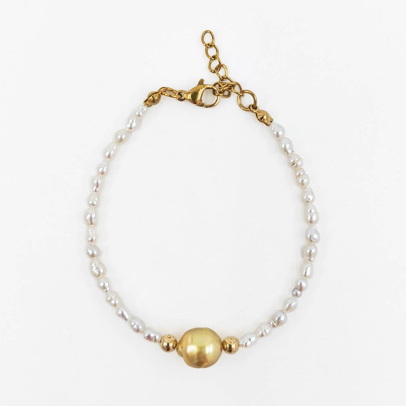 Náramek vyrobený ze sladkovodních perel s jednou jihomořskou perlou uprostřed