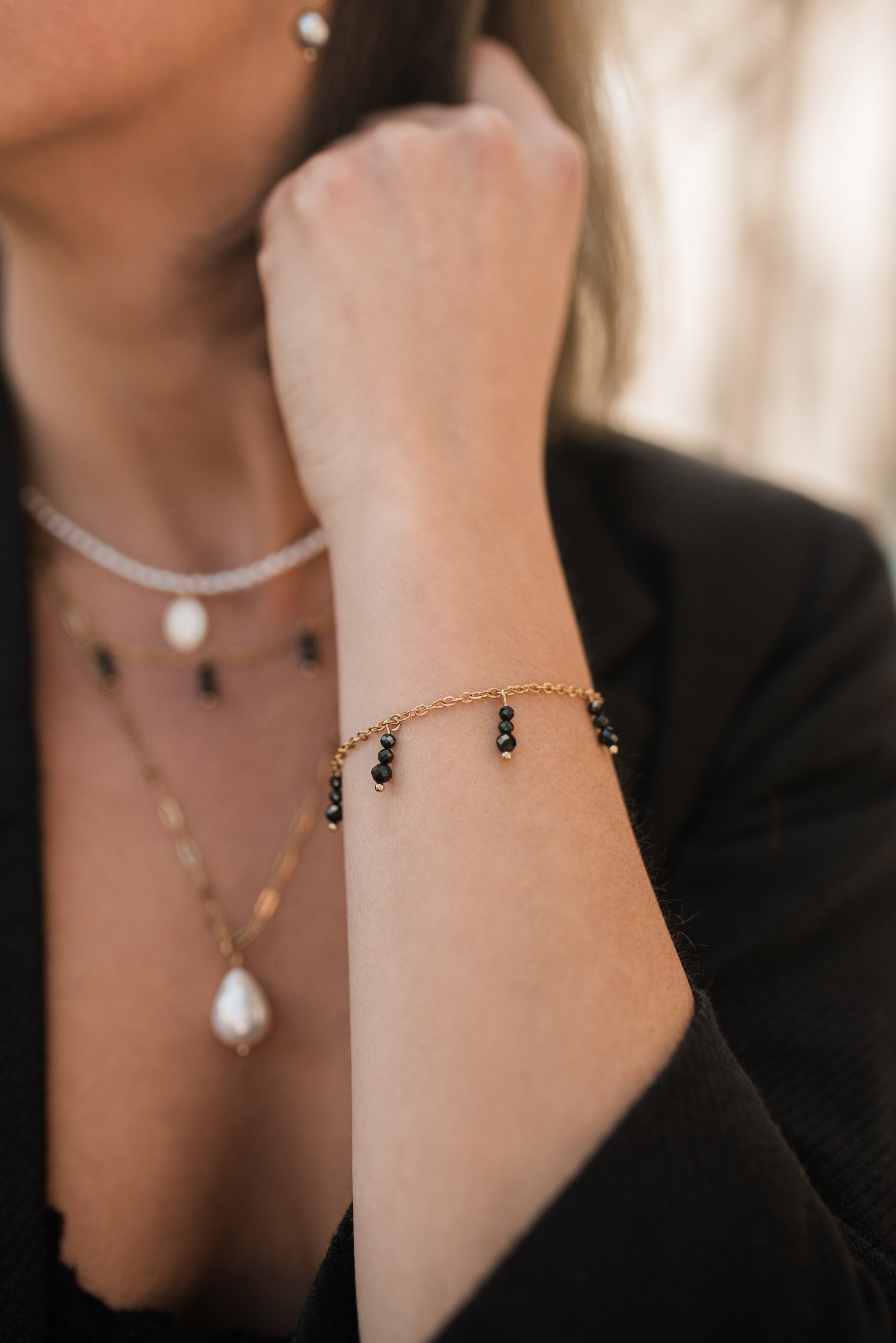 Perly, minerály ani drahokamy by neměly přicházet do kontaktu s vodou, kosmetikou, potem - časem dochází k většímu opotřebení. Na sport, spaní a jiné zátěžové aktivity doporučuji všechny šperky sundávat, abyste prodloužili jejich životnost. Výjimkou jsou celokovové šperky z oceli bez kamenů či perel.