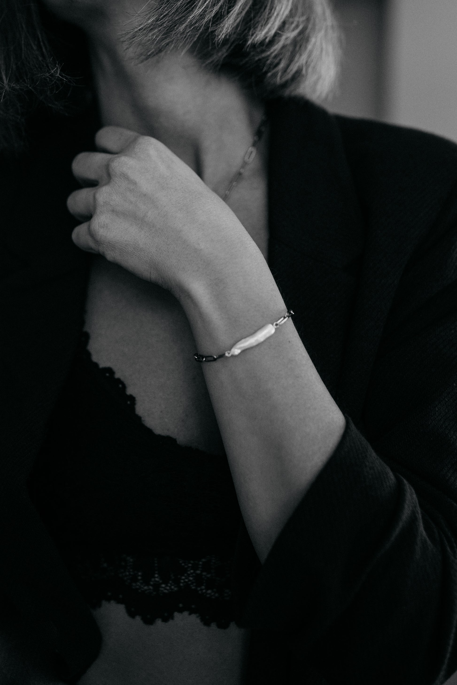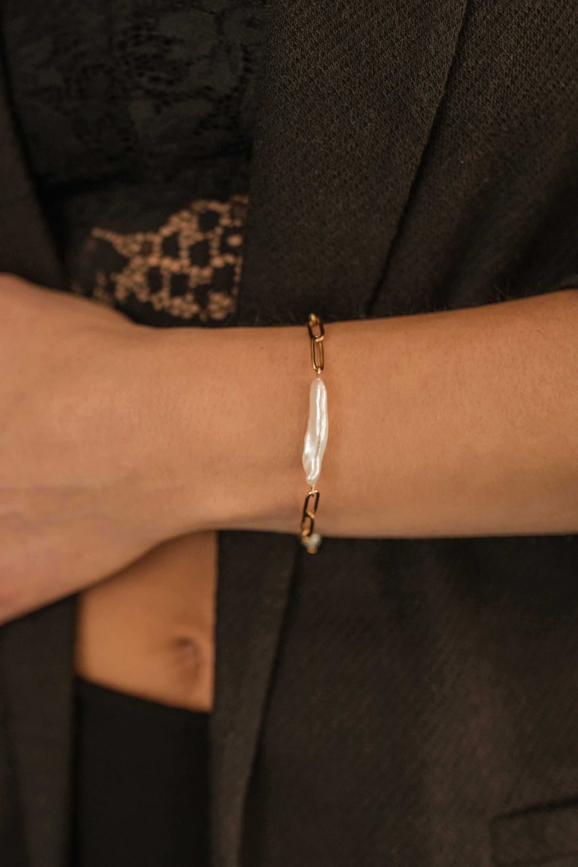 Řetízkový náramek s biwa perlou