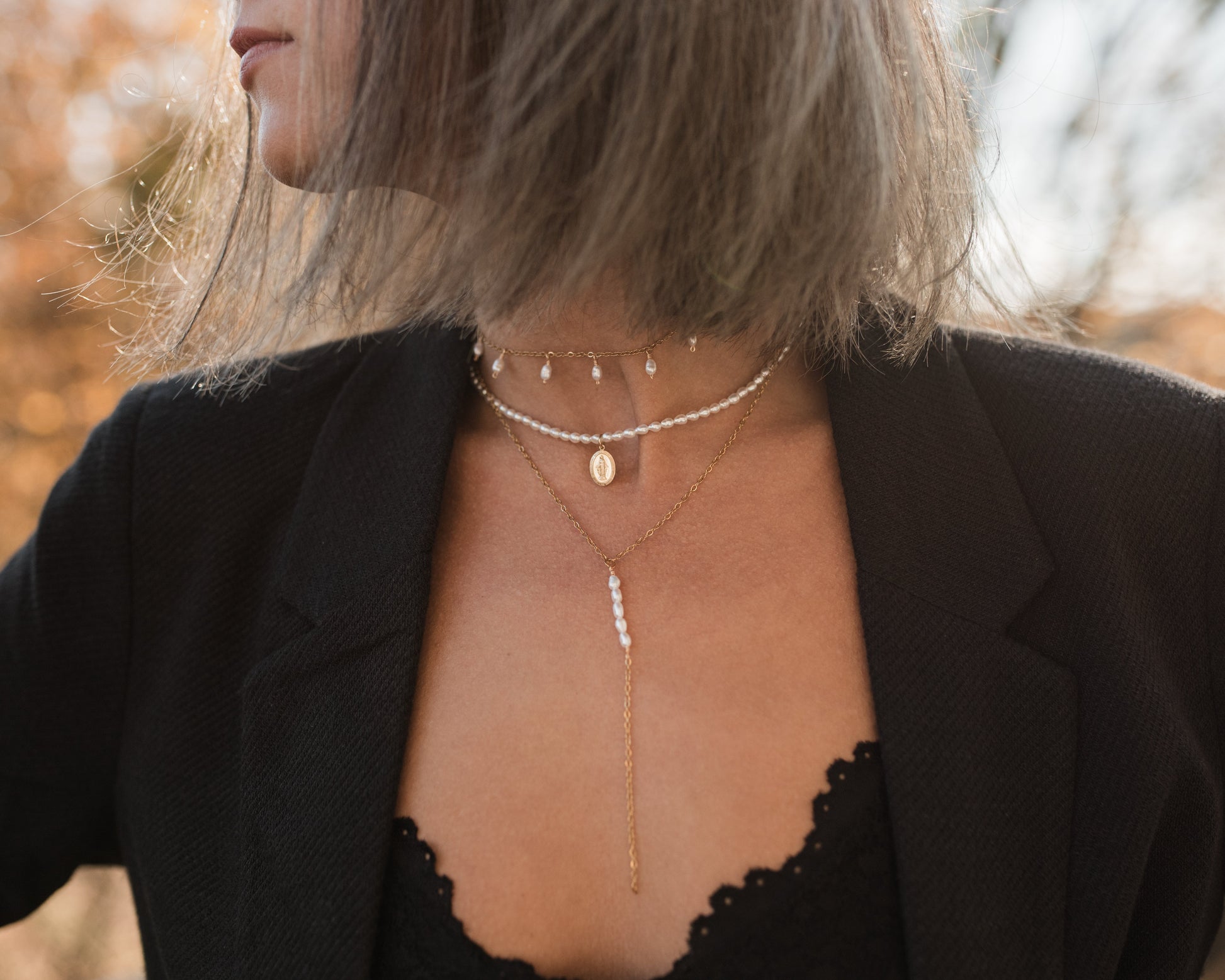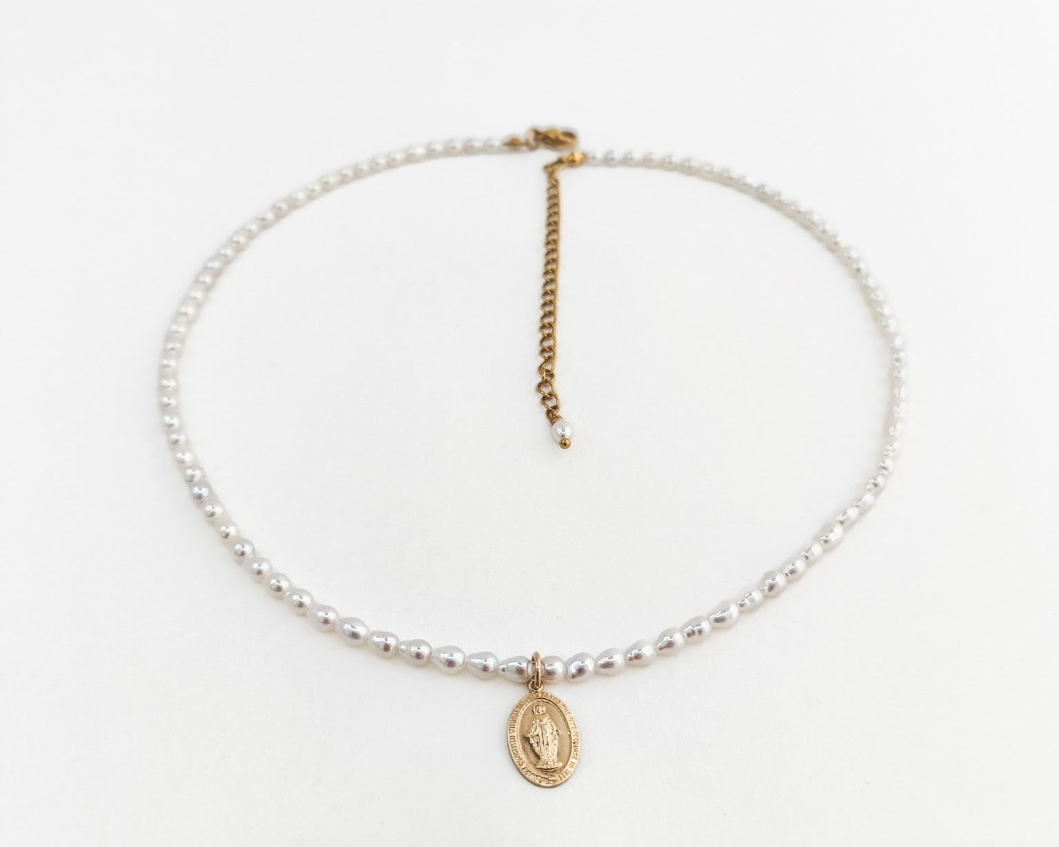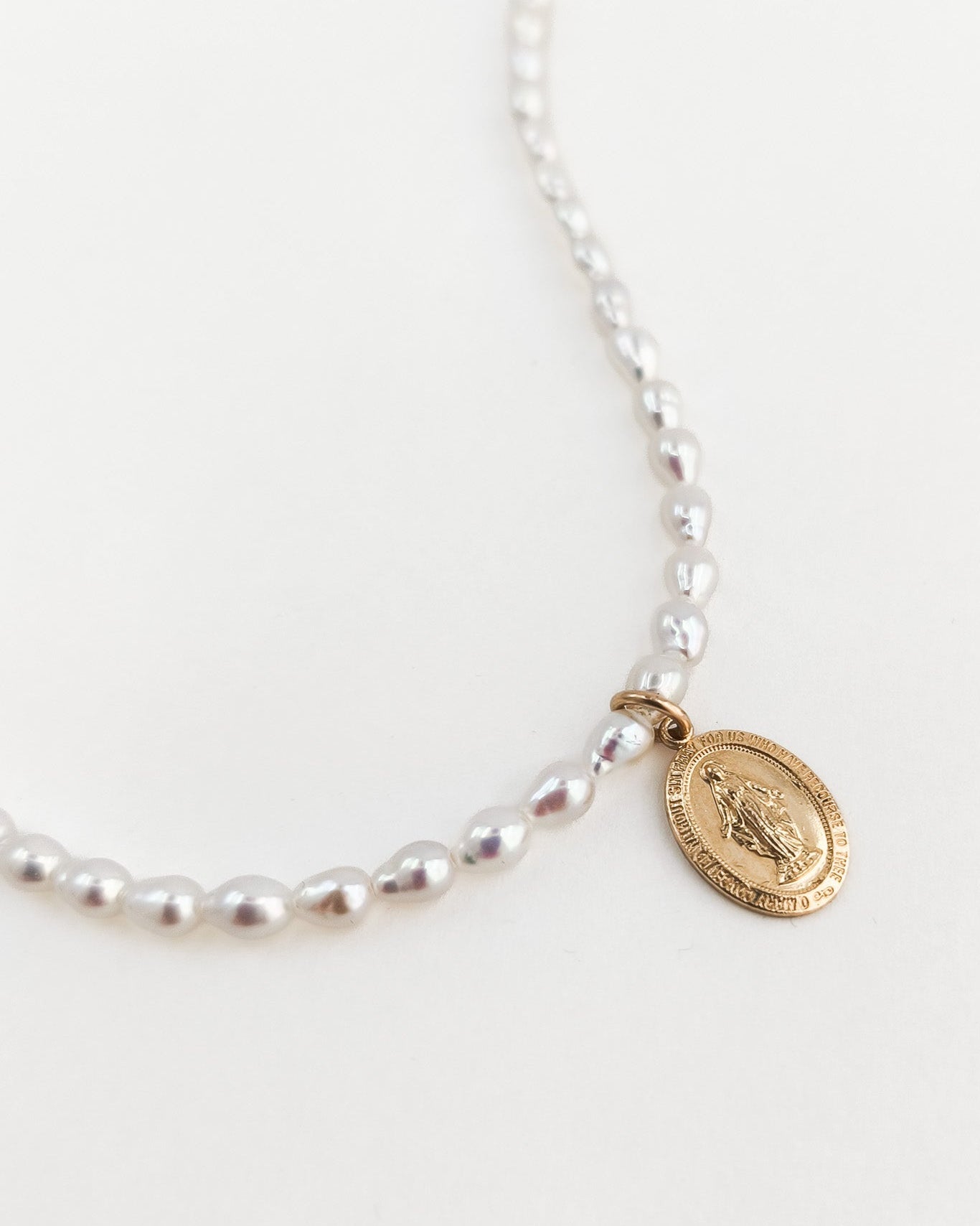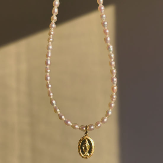 Náhrdelník ze sladkovodních perel s vysokým leskem, přívěsek madonky