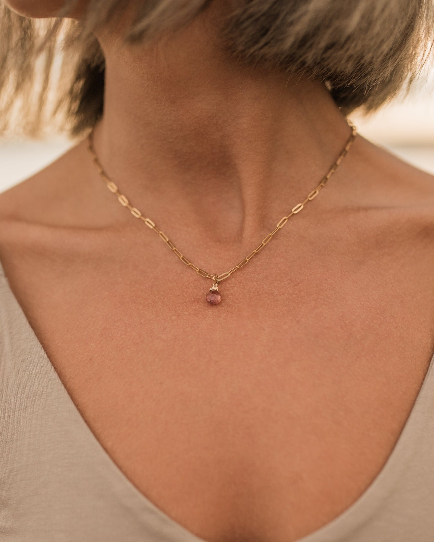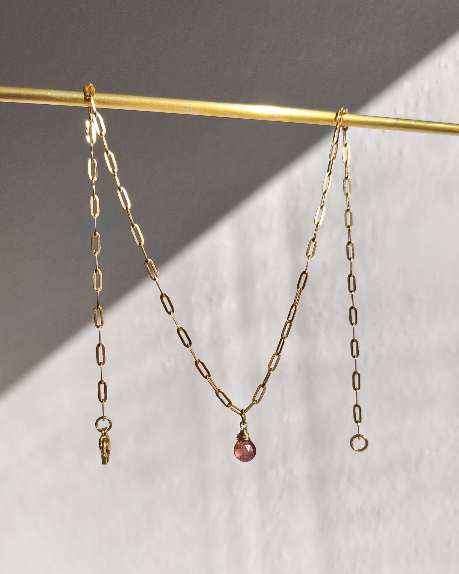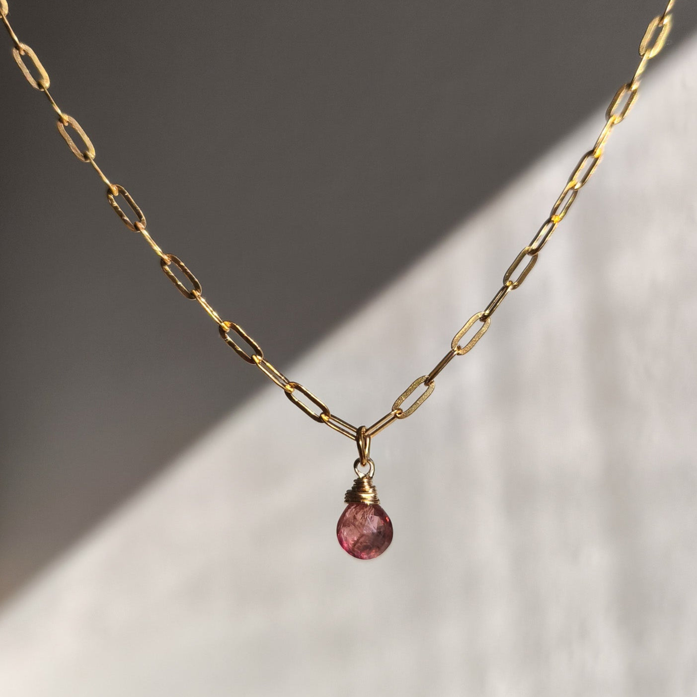 Řetízek s růžovým turmalínem broušeným do tvaru kapky